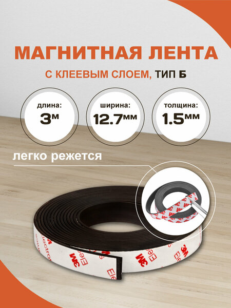 Магнитная лента 12.7 мм с клеевым слоем 3М быстро приклеивается и надежно удерживается на любой ровной и гладкой поверхности. Это универсальный фиксатор для различных по весу и размеру полиграфических и рекламных материалов, сувенирной продукции и т. п. Магнитная лента с клеевым слоем 12.7 мм характеризуется удобством использования и широкой сферой применения. Магнитной полосе можно придать любую форму. Магнитная лента легко режется обычными ножницами. На ленту можно повесить мелкие инструменты, скрепки, записки, фото и т. д. Две ленты разных типов (А + Б) можно использовать для сборки рекламных панелей и вывесок. Для этого одну ленту наносят по периметру каркаса, а другую наклеивают изнутри лицевого стекла. Что еще можно сделать, имея рулон магнитной ленты с клеевым слоем: – Театр теней для показа сказки или представления малышу. – Походный набор акварели с магнитными кюветками. – Элементы бизиборда или бизидомика. – Зафиксировать неплотно закрывающуюся дверцу или выдвижной ящик. – Подвесить занавеску от мух и комаров. – Закрепить строительный уровень на столбе. – Прикрепить фасад к посудомоечной машине. – Приделать решетку к системному блоку компьютера. – Закрепить фитолампы, чтобы выращивать в доме рассаду. Примечание: для реализации некоторых из этих идей понадобится ответный слой, к которому лента должна магнититься. Это может быть мягкое железо или магнитная лента типа А. Магнитная лента длиной 10 см, легко удерживает приклеенное к ней изделие весом до 300 г (при равномерно распределенной нагрузке). Обратите внимание, магнитная лента Forceberg изначально разработана как многофункциональная и не тестировалась на работу с роботами-пылесосами. Важно! Ввиду особенностей технологического процесса намагничивания винила лента может быть намагничена неравномерно и иметь небольшие локальные участки с большей или меньшей магнитной силой. В зимнее время рекомендуется дать отлежаться рулону сутки в тепле и после этого раскручивать по ходу закручивания рулона. Это не уплотнитель! Лента не предназначена для применения в качестве уплотнительного профиля для холодильника. Толщина винила 1.5 мм. Толщина клеевого слоя 0.2 мм. Допустимая погрешность 0.01 мм.