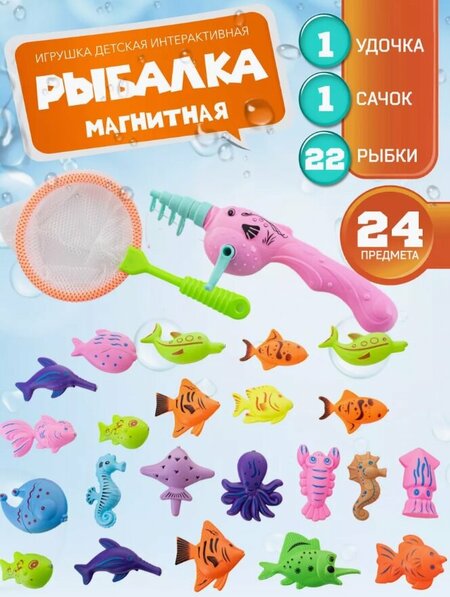 Магнитная рыбалка для детей: развивающая игрушка для ванной Магнитная рыбалка для детей – это развивающий набор из 24 предметов, состоящий из удочки, совка и 22 рыбок. Этот набор предназначен для детей от 1 года и старше и станет отличным развлечением для малышей во время купания. Безопасность и качество материалов Игрушки для ванной изготовлены из высококачественного пластика, что делает их безопасными для детей. В комплекте отсутствуют острые детали, что обеспечивает комфортное и безопасное использование. Магнитная рыбалка для детей способствует развитию мелкой моторики, координации рук и глаз, а также тренирует ловкость, меткость, концентрацию внимания и усидчивость. Набор магнитной рыбалки можно использовать как сортер, головоломку, разделяя животных по цветам и формам. Это позволяет разнообразить игру и сделать ее более интересной для ребенка. Магнитная рыбалка для детей подходит для мальчиков и девочек, а также для детей с рождения. Размеры и вес Магнитная рыбалка имеет размеры 11х25х18 см и весит 263 г, что делает ее удобной для хранения и переноски. Выбирая магнитную рыбалку для детей, вы получаете развивающую игрушку, которая станет любимым развлечением для вашего малыша и поможет ему в развитии важных навыков.
