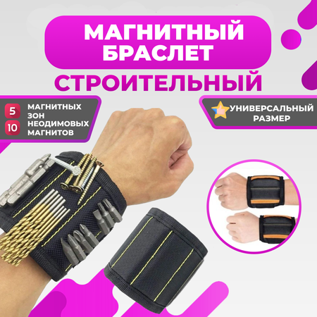 Магнитный браслет для строителей с 5 мощными магнитами - это незаменимый аксессуар для профессионалов и любителей, которые ценят порядок и удобство в работе. Цвет браслета в ассортименте Строительный браслет на руку- Незаменимая вещь при ремонтных и строительных работах! Отличный помощник для монтажников, строителей, слесарей, столяров, швей и рукоделиц, работающих с небольшими железными инструментами, а также использующих различные сверла, биты, саморезы, винтики, гайки, шурупы, гвозди, иголки, булавки, ножницы и другую фурнитуру. В браслете строительном пять магнитных зон и десять магнитов. Они удерживают небольшие металлические предметы на вашей руке, оставляя при этом руку свободной. Таким образом, магнитный браслет освобождает вторую руку для других полезных действий во время работы.
