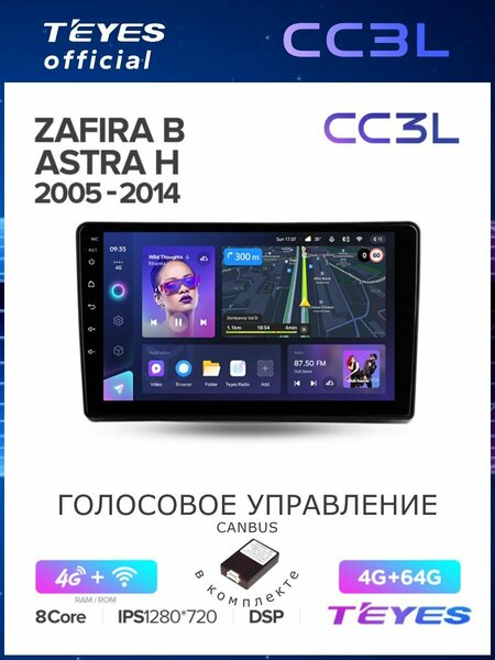 Магнитола Opel Zafira B 2005-2014 / Opel Astra H 2004-2014 Teyes CC3L 4/64GB, штатная магнитола, 8-ми ядерный процессор, IPS экран, DSP, 4G, Wi-Fi, 2 DIN