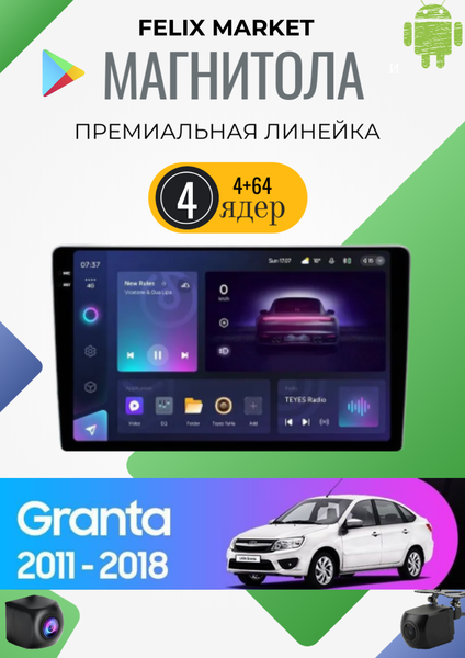 Магнитола процессорная Lada Granta 2011 ваш путь к безопасности и комфорту! Андроид магнитола для Lada Granta 2011 – является идеальным сочетанием качественного звука, полноценного планшета и стиля, которая легко устанавливается и с легкостью интегрируется в ваш автомобиль. Одной из главных особенностей 2 дин магнитолы является ее богатый функционал. Сенсорная магнитола оснащена двухдиапазонным радио, что позволит вам наслаждаться любимыми радиостанциями в дороге, а также встроенным модулем Bluetooth, который обеспечивает простое и безопасное соединение с вашим мобильным устройством. Сенсорный планшет 9 дюймов поддерживает Wi-Fi (вай фай), GPS / AUX (аукс)/ PlayMarket (Google Play Market) / Яндекс. Карты / YouTube (ютуб). Включайте музыку и видео, подключайтесь к интернету, скачивайте фильмы, приложения, аудиокниги, пользуйтесь навигатором. Подключите свой телефон к автомагнитоле по Bluetooth и управляйте звонками: можно отвечать и отклонять вызовы, набирать номер прямо на экране. Наша андроид магнитола также оснащена многофункциональным сенсорным IPS экраном с разрешением 1280 * 820 пикселей. Такое разрешение обеспечивает прекрасное изображение, широкий угол обзора и удобство использования. Так же она поддерживает подключение USB-флешек и карт памяти. Благодаря ее высокой производительности и мощному процессору, вы можете быть уверены, что автомагнитола сможет ответить на все ваши потребности. Не только функциональность делает эту магнитолу уникальной. Ее звуковое качество впечатлит вас своей четкостью и глубиной. Встроенные звуковой процессор обеспечит мощный и высококачественный звук, который можно дополнительно усилить, подключив сабвуфер или усилитель звука. Если вы цените инновационные технологии, высокое качество звука и максимальный функционал – выбирайте андроид магнитолу 2 din. Это современное решение для автозвука, которое позволит вам создать идеальную атмосферу в вашем автомобиле. Полезный подарок в машину для жены и подруги. Подарите крутой презент для любого повода и праздника начальнику или коллеге. Брат будет в восторге. Интересный автотовар подойдет на день рождение, день отца и автомобилиста. Порадуйте своих близких. Не забудьте про 14 февраля день влюбленных и 23 февраля. Не отвлекайтесь от дороги и управления, приобретайте магнитолу андроид по выгодной цене. Основные преимущества: Высокая производительность: 4-ядерный процессор и 4 ГБ ОЗУ для плавной работы игр, навигации и потокового видео. ️ Яркий QLED-дисплей: Наслаждайтесь контрастным изображением даже при ярком солнечном свете. Профессиональный звук: Эквалайзер DSP для тонкой настройки басов, высоких и средних частот. Управление с руля: Подключайте совместимые системы для удобного контроля музыки и звонков. Камера заднего вида: Паркуйтесь уверенно с четким обзором через экран магнитолы. Основные характеристики: ✔ ОС: Android 13 ✔ Процессор: 4-ядерный, 1,3 ГГц — высокая производительность ✔ Память: 4 ГБ ОЗУ + 64 ГБ встроенной памяти ✔ Дисплей: 1280×800, QLED — яркое, контрастное, чёткое изображение ✔ Эквалайзер DSP — профессиональная настройка звука ✔ Форматы воспроизведения: MP3, APE, AAC, FLAC, AVI, MKV, FLV ✅ IPS матрица ✅ CarPlay / Android Auto — удобная синхронизация с телефоном ✅ Bluetooth 5.0 — качественная передача звука и громкая связь ✅ Wi-Fi, GPS, USB — быстрый доступ к сети и навигации ✅ Разъемы для управления с руля ✅ Поддержка к