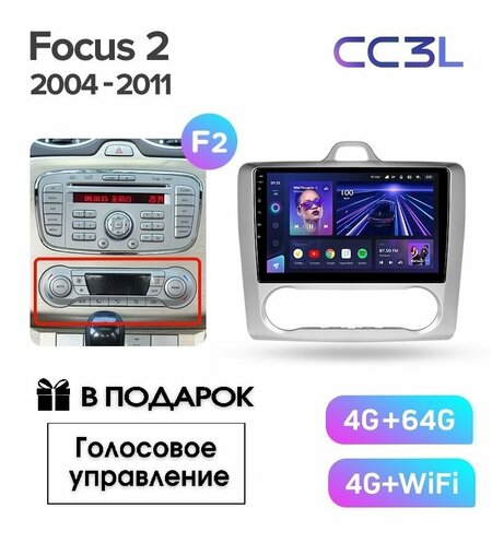 Магнитола TEYES FORD FOCUS 2 2004-2011 г. CC3L 4/64ГБ (рамка под климат) ГОЛОСОВОЕ УПРАВЛЕНИЕ В ПОДАРОК!