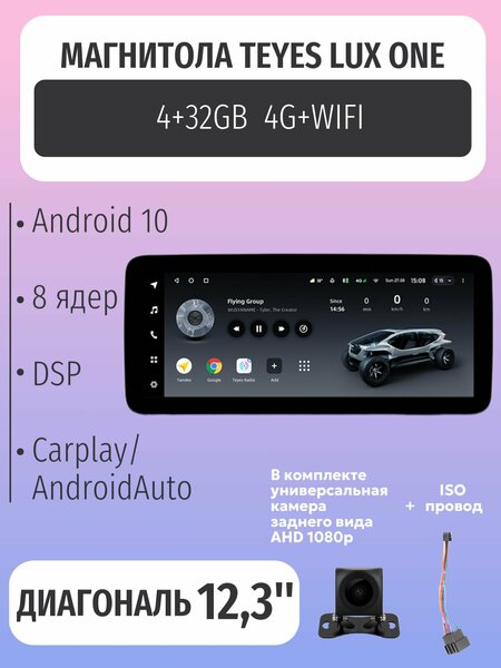 Магнитола TEYES LUX ONE 4/32 Universal ,12.3 дюйма/ (Round Corner) Тайс Люкс Ван (Универсальная камера заднего вида AHD 1080p и провод ISO в комплекте!)