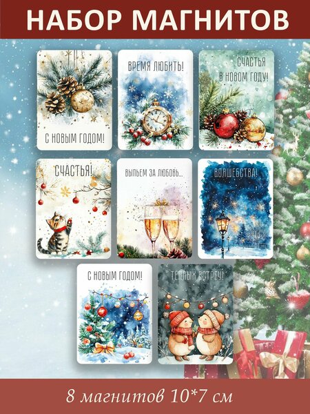 Приближается пора зимы и Нового года 2026 - года Лошади. Новогодние магниты на Новый Год Лошади - это идеальный подарок для всех, кто любит удивлять своих близких и друзей на празднике. Этот волшебный набор магнитиков создаст особую атмосферу и добавит душевного тепла в холодные новогодние дни. Поздравительные магниты - это своего рода открытки, дополнение к подаркам, это маленькие подарки, которые могут сделать чье-то настроение гораздо лучше. Предлагаем вам наборы по 8 шт. Зимние открытки из нашего набора отлично подойдут для поздравлений рождественской и новогодней тематики. Они олицетворяют всю красоту зимы, снега, амбициозных планов и море позитива. Каждый презент имеет размер 7х10 см. Изображения с символом года, новогодней сказочной тематики радуют глаз и дарят волшебное ощущение новогоднего приключения. Наша продукция прекрасно подойдет для украшения дома, интерьера, фотосессии. Украсьте красивыми нежными картинками свою комнату, спальню, кухню Как красиво будут смотреться открыточки на стене перед рабочим столом или на холодильнике на кухне. Такие карточки поднимут настроение, напомнят о приближающемся празднике, подарят атмосферу волшебства в доме или на работе. Порадуйте поздравительной открыткой своих родных и близких. Мини магниты можно подарить как отдельный подарок, так и в составе, например, букета из цветов или другого подарка. Наши магниты сувенирные можно подарить не только на новый год, но и без повода просто так или любой другой праздник. Сделайте приятный сюрприз своим близким. Это отличная идея для подарка самым родным и близким людям, коллегам на работе. А можно сделать презент и учителю или воспитателю. Так что не упустите возможность порадовать своих близких таким красивым и значимым подарком. Набор новогодних магнитов на Новый Год Лошади станет настоящей находкой для каждого, кто ищет подарки на новый год. Закажите сейчас и подготовьтесь к особой магии праздника!