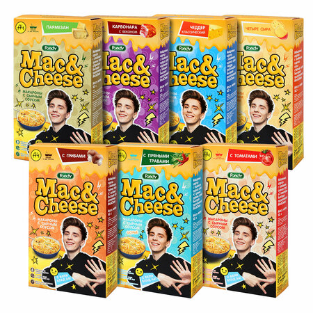 Достойная замена приевшимся гарнирам. Быстрый обед или ужин на 1-2-х человек. Достаточно сварить макароны (7-8 мин), добавить 60 мл молока или 80 мл сливок и 15 г масла (со сливками масло не требуется). В состав микса входит 8 вкусов: Макаронные изделия с соусом "Сырный Карбонара с беконом" Макаронные изделия с соусом "Сырный с пряными травами острый" Макаронные изделия с соусом "Сырный с томатами" Макаронные изделия с соусом "Сырный Чеддер классический" Макаронные изделия с соусом "Сырный Пармезан" Макаронные изделия с соусом "Сырный с грибами" Макаронные изделия с соусом "Четыре сыра"