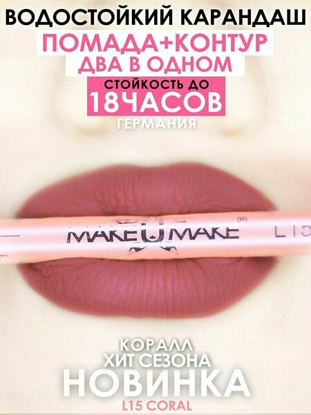 "Make U Make" - карандаш-помада с 18-часовой стойкостью Кораловый освежающий припыленный оттенок без рыжего подтона. Венец пастельной коллекции. Нежный и манящий, сочный и сладкий. Идеально подойдёт тёплым блондинкам, шатенкам и женственно-игривым рыжеволосым красоткам, тем кто любит по-натуральнее. Стойкость 18 часов: карандаш-помада обеспечивает стойкость на протяжении всего дня, что позволяет вам выглядеть великолепно в любой ситуации. Витамины А и Е и природные антиоксиданты: в составе карандаша-помады содержатся витамины А и Е, а также природные антиоксиданты, которые борются со свободными радикалами и помогают сохранить молодость и здоровье ваших губ. Дополнительная герметичная упаковка: карандаш-помада поставляется в дополнительной герметичной упаковке, что обеспечивает его сохранность и защиту от внешних воздействий. Легко снимается средствами для снятия макияжа: карандаш-помада легко снимается с губ средствами для снятия макияжа, что делает процесс демакияжа быстрым и комфортным. В комплекте с карандашом-помадой идет оригинальная точилка MakeUMake для BIO-пластика, что позволяет всегда поддерживать остроту карандаша и сохранять его первозданный вид. "Make U Make" - карандаш-помада с 18-часовой стойкостью, королевским красным цветом и оригинальной точилкой MakeUMake для BIO-пластика станет незаменимым помощником в создании безупречного образа.