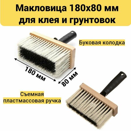 Макловица Лазурный Берег №3: высококачественная кисть для малярных работ Макловица Лазурный Берег №3 предназначена для нанесения обойного и других клеев, грунтовок, а также размывки побелочных материалов. Благодаря ширине 180 мм, эта кисть обеспечивает равномерное и быстрое нанесение материала на поверхность. Синтетическое волокно: прочность и долговечность Ворс кисти изготовлен из синтетического волокна, что обеспечивает высокую прочность и долговечность инструмента. Синтетическое волокно не впитывает влагу и не деформируется при длительном использовании, что гарантирует долгий срок службы кисти. Буковая колодка и съемная ручка под удлинитель Макловица оснащена буковой колодкой, которая обеспечивает прочность и долговечность инструмента. Съемная пластмассовая ручка под удлинитель позволяет использовать кисть с различными удлинителями, что делает работу еще более удобной и комфортной. Легкий вес и компактные размеры Вес кисти составляет всего 0,18 кг, что делает ее легкой и удобной для работы. Размеры кисти составляют 210х180х80 мм, что позволяет легко хранить и транспортировать инструмент. В комплекте идет одна кисть малярная Лазурный Берег №3.