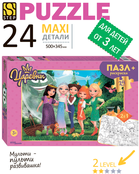 Увлекательный игровой набор Царевны - это игра с крупными деталями. Пазлы для детей 3 лет 4 лет. Также подойдут пазлы для детей 5 лет. В подарочной коробке находится пазл, который складывается из 24 элементов. Пазл создан по мотивам одноименного мультфильма. На картинке изображены пять главных героинь, которые приехали учиться в школу волшебства. В перерывах от учебы Варвара Краса — Длинная Коса, Царевна Елена Прекрасная, Дарья — Царевна Несмеяна, а также Соня Спящая Царевна и Василиса — Царевна Лягушка решили выбраться на природу и отдохнуть. Набор можно использовать для обучения и для рисования. На обратной стороне деталей есть рисунок, который после сборки пазла можно разукрасить карандашами, фломастерами и цветными ручками. Элементы пазла сделаны из плотного качественного картона. Яркие детали помогут сделать процесс сборки картинки интересным и увлекательным. Maxi пазлы изготовлены из экологичных, безопасных материалов. Они научат находить нужный элемент из множества похожих и располагать его в нужном месте. Логическая игра развивает мелкую моторику, внимание, мышление. Такую компактную, удобную игру можно взять в дорогу и в путешествие, в детский сад, выбрать как подарок на день рождения для сына и для дочки. Игра для детей отлично подходит для совместных игр с родителями. Вы сможете использовать игру как напольную мозаику, сложный напольный пазл. Такой подарочный набор будет отличной покупкой для внука или внучки. Большие пазлы для девочек и для мальчиков помогают раннему развитию. Они развивают зрительное восприятие, речь, усидчивость, логику и пространственное мышление, память. Набор надолго увлечет вашего ребенка и подарит много свободного времени его родителям! Пазлы обладают антистресс эффектом: снижают напряжение и эмоциональное перевозбуждение ребенка. Развивающая игра понравится малышам благодаря героям из любимых мультфильмов. Детская игрушка от Step Puzzle - лучший выбор для игры, обучения и подарка!