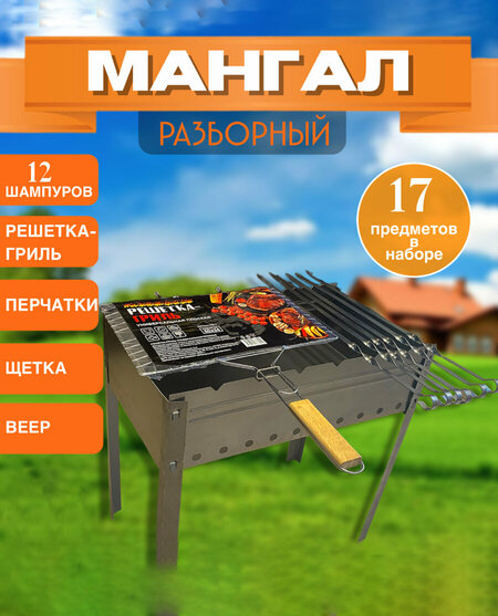 Набор для шашлыков – идеальное решение для тех, кто любит проводить время на свежем воздухе и наслаждаться вкусными блюдами. Этот набор включает в себя все необходимое для приготовления шашлыка и других блюд на гриле. Основной компонент набора – мангал сборный размером 50х50х26 сантиметров. Он изготовлен из прочного материала, что делает его долговечным и жаростойким. Мангал имеет удобную конструкцию, которая обеспечивает быструю и легкую сборку. Толщина стенок мангала составляет 0,6 миллиметров, что позволяет равномерно распределять жар и получать отличный результат при готовке. К набору входят также 12 острых шампуров 6 угловых и 6 хороших плоских, которые можно использовать для нанизывания мяса, овощей и других ингредиентов. Шампуры изготовлены из высококачественной нержавеющей стали и обладают достаточной прочностью для надежной фиксации продуктов. Для удобства приготовления на гриле в наборе есть решетка, на которой можно разместить продукты для запекания или подогрева. Решетка выполнена из прочной стали и обладает достаточной площадью для размещения большого количества ингредиентов. Чтобы защитить руки от ожогов, в набор включены пара перчаток, которые обеспечивают надежную защиту от высоких температур. Перчатки выполнены из высококачественного материала, который обеспечивает комфортную посадку на руку и свободу движений. Для удобства и равномерного распределения жара, в набор входит веер. Он предназначен для раздувания огня и помогает поддерживать стабильную температуру на гриле. Для чистки гриля от остатков пищи и сажи в наборе есть металлическая щетка. Она обладает прочной конструкцией и жесткими щетинками, которые эффективно удаляют загрязнения и облегчают процесс очистки. Этот набор для шашлыков – отличное решение для любителей гриля и приготовления блюд на открытом воздухе. Он идеально подойдет для отдыха на природе, пикника, барбекю или просто для проведения времени с семьей и друзьями. Благодаря надежному и функциональному дизайну, этот набор обеспечивает комфорт и удовольствие при приготовлении шашлыка и других блюд на гриле.