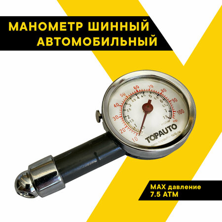 Шинный манометр автомобильный "Топ Авто"оснащен клапаном сброса; упакован в удобный пластиковый кейс. Этот измеритель давления в шинах представляет собой простой и надежный компактный прибор, предназначенный для того, чтобы измерять давление в автомобильных и мотоциклетных шинах, а также в колесах других транспортных средств. Максимальное давление - 7,5 кгс/см2. Как и другие наши аксессуары в машину, этот практичный аналоговый манометр для шин представляет собой отличный подарок для мужчины-автолюбителя, а также для автоледи. В зависимости от характеристик и назначения конкретного товара, его можно использовать для измерения давления в шинах таких легковых и грузовых автомобилей, как Hyundai Solaris (солярис), Лада Веста, Калина, Киа (kia rio) 3, 4, Сид, Нива, Гранта, Хундай Крета(creta), Рено Логан (renault logan), Дастер (duster), Сандеро, Шкода Октавия, Рапид, Мазда (mazda) 3, 6, Лансер 9, 10, kia ceed, skoda octavia a7, Фольксваген (Volkswagen) Поло Седан (vw polo sedan), Опель (opel), Субару, Ниссан Теана, kia sportage 3, КАМАЗ, МАЗ, MAN, Mercedes (Мерседес), Газель, BMW, Пежо, Mitsubishi (Мицубиси) и пр. В нашем магазине вы всегда сможете купить и другие автотовары, аксессуары и доп. оборудование в салон и багажник – все для авто, а также все для машины, автоэлектроники и навигации – такие, как пистолет для подкачки шин, манометр для компрессора в автомобиль, шланг подкачки шин, пусковые провода, пакеты для колес автомобиля, динамическая стопа рывковая, буксировочная петля-шакл, буксировочный крюк, стальной трос для лебедки, ремень автомобильный для перевозки груза, авто одеяло, буксировочная петля, шаклы и ленты для авто, системы для хранения в авто, стропы для перевозки груза, рывковые тросы, автомобильные компрессометры, стартовые провода, зарядные устройства автомобильные держатели, шприцы для смазки, мультиметры цифровые, рычажные масленки, воронки для бензина, пакеты для колес, чехлы для шин, насосы ножные, наборы для ремонта шин, манометры автомобильные шинные.
