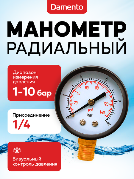 Манометр Damento: точность и надежность Манометр Damento представляет собой надежный и точный инструмент для измерения давления в пневматических системах. Он обеспечивает высокую точность показаний, что позволяет контролировать работу оборудования и предотвращать возможные проблемы. Присоединительный размер и максимальное рабочее давление Манометр Damento имеет присоединительный размер 1/4", что позволяет легко и быстро подключить его к большинству систем. Максимальное рабочее давление составляет 10 бар, что делает его подходящим для большинства применений. Манометр Damento работает на пневматическом принципе, что обеспечивает высокую точность измерений и стабильность показаний. Защита от сухого хода и прочие характеристики Манометр Damento не имеет защиты от сухого хода, что следует учитывать при выборе данного устройства. Прочие характеристики включают максимальное давление 6 атм (кг/см2) и радиальное подключение. Выбирая манометр Damento, вы получаете надежный и точный инструмент для контроля давления в пневматических системах.