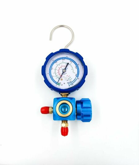 Универсальный манометрический 1 вентильный коллектор DSZH WK-468GL со смотровым стеклом, с мановакуумметром 68 мм в защитном кожухе. Манометр DSZH WK-468-GL служит для измерения давления в промышленных системах холодоснабжения и кондиционирования, представляет собой измерительный прибор со шкалой давления, предназначен для измерения глубины вакуума в системе. Данный механический манометр имеет чувствительный к давлению элемент спирального типа - трубку бурдона, который непосредственно двигает стрелку. Температурные шкала на манометре для фреона: R22/134/404/410.