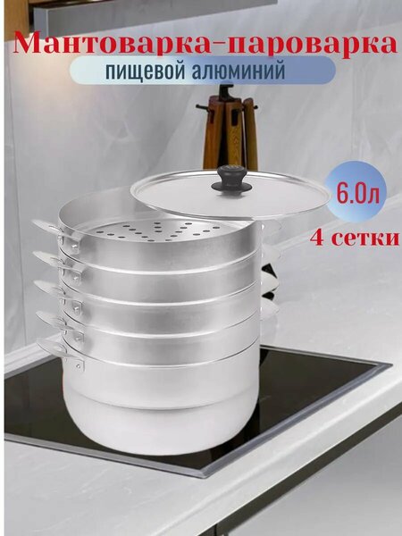 Мантоварка из алюминия Калитва 180640 4 яруса, 6 литров, диаметр 26 см – это идеальное решение для приготовления вкусных и сочных мантов, а также других блюд на пару. Алюминиевый манты-казан с сетками сочетает в себе высокое качество, удобство использования и долговечность. Благодаря четырем ярусам вы сможете готовить большое количество порций одновременно, что особенно удобно для больших семей или приема гостей. Мантоварка Калитва изготовлена из прочного алюминия, который обеспечивает быстрый и равномерный нагрев, сохраняя полезные свойства продуктов. Объем в 6 литров и диаметр 26 см делают эту модель одной из самых вместительных в своем классе. Алюминиевая конструкция гарантирует легкость и удобство в использовании, а также устойчивость к коррозии. В манты-казане удобно готовить: манты, пельмени, хинкали, вареники, тефтели, котлеты, рулеты, штрудели и другие объемные сочные кулинарные изделия из мяса, теста, овощей. Каждый ярус оснащен удобными ручками для безопасного извлечения, а плотно прилегающая крышка сохраняет тепло и аромат блюд. Калитва мантоварка – это надежный помощник на кухне, который подойдет как для профессиональных поваров, так и для любителей. Алюминиевая мантоварка легко моется и не требует особого ухода, что делает ее практичным выбором для любой хозяйки. Если вы ищете качественную и функциональную мантоварку алюминиевую, то модель мантоварка из алюминия 6 литров от Калитва – это то, что вам нужно. Она станет незаменимым устройством для приготовления вкусных и полезных блюд на пару. Выбирайте мантоварку из алюминия Калитва 180640 и наслаждайтесь идеальным результатом каждый раз!