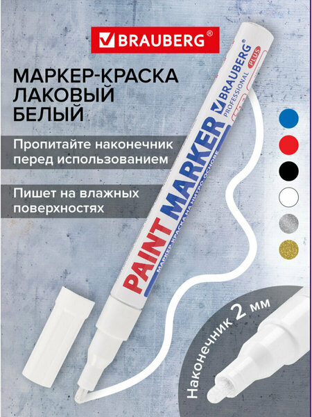 Лаковый маркер-краска BRAUBERG PROFESSIONAL PLUS с диаметром 2 мм в белом цвете станет незаменимым инструментом для профессионалов. Его мощная нитро-основа РМ-14 обеспечивает надежную маркировку на любых материалах, включая бетон, дерево, стекло и металл. Этот строительный маркер идеально подходит для использования в сложных условиях, включая влажные и грязные поверхности, благодаря термо- и водостойким чернилам. Прочный алюминиевый корпус обеспечивает долговечность, а круглый наконечник из акрила гарантирует стабильную ширину линии от 1 до 2 мм. Черная версия также доступна для тех, кто ищет универсальность, а белый маркер позволяет выделяться на любых фонах. Используйте маркер краска для долговечной и четкой маркировки, не переживая о выцветании. Дайте возможность вашему творчеству и работе проявиться с маркером, который легко справляется с любыми задачами. • Тип: маркер-краска. • Серия: Professional Plus. • Количество в комплекте: 1 шт. • Цвет чернил: белый. • Форма наконечника: пулевидный. • Ширина линии письма: 2 мм. • Чернила с лакирующим эффектом: да. • Материал корпуса: алюминий. • Водостойкие: да. • Устойчивы к выцветанию: да. • Быстросохнущие чернила: да. • Артикул производителя: 151438.