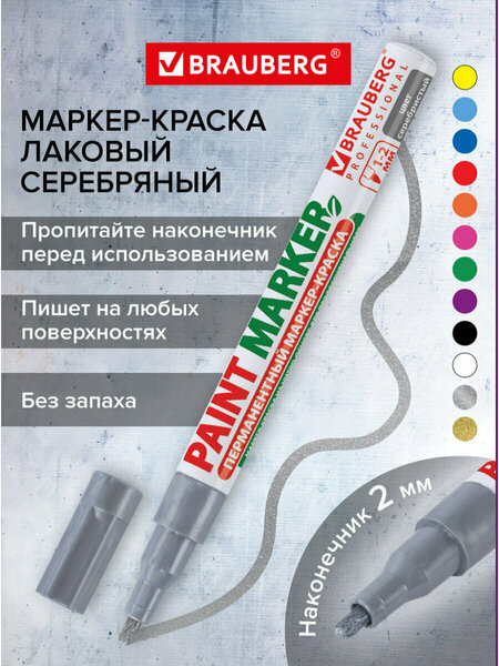 Представляем вам лаковый маркер-краску BRAUBERG PROFESSIONAL, который станет незаменимым инструментом для маркировки различных поверхностей. С его помощью вы сможете легко работать с бетоном, деревом, стеклом, металлом, резиной и пластиком. Этот маркер не только идеален для строительных нужд, но также отлично подойдет для творчества и декорирования. Благодаря чернилам с лаковым эффектом, которые не содержат ксилол, вы сможете использовать маркер без резкого запаха, что делает его безопасным для работы в закрытых помещениях. Пишет по сухим, жирным, грязным и ржавым поверхностям. Ваши линии будут четкими благодаря ширине письма от 1 до 2 мм, а прочный круглый наконечник из пористого акрила гарантирует долговечность. Алюминиевый корпус придает маркеру стильный вид и дополнительную прочность. Не упустите возможность улучшить свои проекты с помощью этого высококачественного маркера-краски, который доступен в сером цвете. Ваши работы будут выглядеть профессионально и аккуратно! • Тип: маркер-краска. • Серия: Professional. • Количество в комплекте: 1 шт. • Цвет чернил: серебристый. • Форма наконечника: круглый. • Ширина линии письма: 2 мм. • Чернила с лакирующим эффектом: да. • Материал корпуса: алюминий. • Водостойкие: да. • Устойчивы к выцветанию: да. • Быстросохнущие чернила: да. • Артикул производителя: 150866.