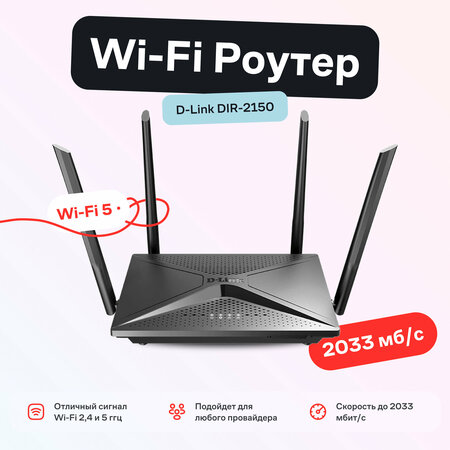 Нужен беспроблемный скоростной интернет по воздуху? Одновременная работа в диапазонах 2,4 ГГц и 5 ГГц позволяет использовать беспроводную сеть для широкого круга задач. Маршрутизатор может выполнять функции базовой станции для подключения к беспроводной сети устройств, работающих по стандартам 802.11a, 802.11b, 802.11g, 802.11n и 802.11ac (со скоростью беспроводного соединения до 2100 Мбит/с1). Волнуетесь за безопасность соединения? Беспроводной маршрутизатор DIR-2150 оснащен встроенным межсетевым экраном. Расширенные функции безопасности позволяют минимизировать последствия действий хакеров и предотвращают вторжения в Вашу сеть и доступ к нежелательным сайтам для пользователей Вашей локальной сети. Поддержка протокола SSH повышает безопасность при удаленной настройке маршрутизатора и управлении им за счет шифрования всего передаваемого трафика, включая пароли. Кроме того, маршрутизатор поддерживает протокол IPsec и позволяет организовывать безопасные VPN-туннели. Поддержка протокола IKEv2 позволяет обеспечить упрощенную схему обмена сообщениями и использовать механизм асимметричной аутентификации при настройке IPsec-туннеля. Встроенный сервис Яндекс. DNS обеспечивает защиту от вредоносных и мошеннических сайтов, а также позволяет ограничить доступ детей к «взрослым» материалам. Сложности в установке и настройке? Для настройки беспроводного маршрутизатора DIR-2150 используется простой и удобный встроенный web-интерфейс. Мастер настройки позволяет быстро перевести DIR-2150 в режим маршрутизатора (для подключения к проводному или беспроводному провайдеру), точки доступа, повторителя или клиента и задать все необходимые настройки для работы в выбранном режиме за несколько простых шагов. Также DIR-2150 поддерживает настройку и управление с помощью мобильного приложения для устройств под управлением ОС Android и iOS.