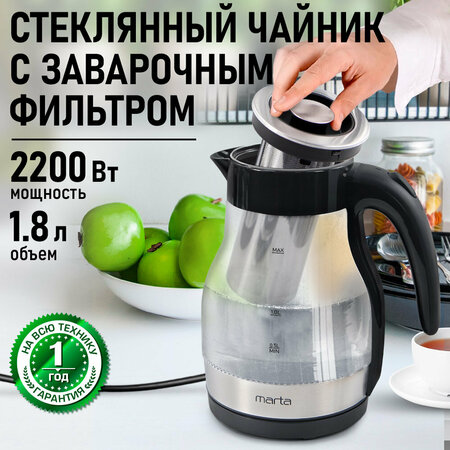 Чайник электрический с заварником, стеклянный, возможность вращения чайника на 360, светодиодная подсветка, многоуровневая защита: автоматическое отключение при закипании, отключение при недостаточном количестве воды, 1.8 л Современный, легкий и прочный в элегантном корпусе из закаленного термостойкого стекла с внутренней подсветкой и со стальным заварочным фильтром. Сохраняет природный вкус и все натуральные свойства воды. Система автоматического отключения при закипании или недостаточном количестве воды заметно продлит срок работы прибора. Оснащен базой питания, позволяющей брать его с любой стороны или вращать на 360 градусов, что делает прибор совершенно безопасным, а его эксплуатацию комфортной. Товары для кухни! Не мини керамический полярис украсит Вашу кухню! Техника для кухни бытовая техника отличный подарок на праздник! Приготовление блюд с использованием кухонная техника наших брендов сделает ваши рецепты вкусными и полезными! Девайсы для кухни – необычайно полезный прибор для вкусного и здорового питания. удобный гаджет для приготовление напитков для дачи, для похудения!