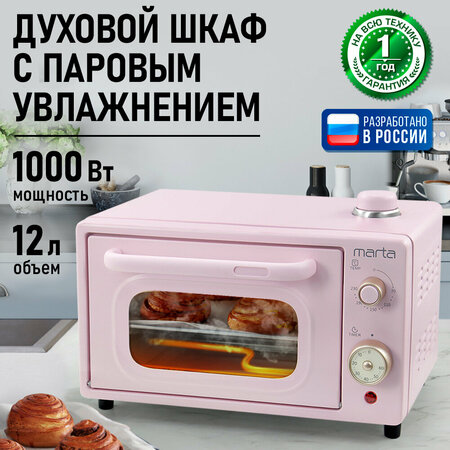 Мощность: 1000 Вт, Объем: 12л, Паровое увлажнение,2 нагревательных элемента, Регулировка температуры: 70°C - 230°C, таймер до 60 мин, cигнал об окончании приготовления, световой индикатор работы, автоматическое выключение. Аксессуары: решетка, противень. Данная модель оснащена: • Камерой объемом 12 литров; • Набором аксессуаров: эмалированный противень и решетка; • Таймером со звуковым сигналом, автоматическим выключением прибора, а также функцией парового увлажнения. Все это сделает процесс приготовления горячей пищи удобным и быстрым! • Механическое управление делает простым и понятным выбор настроек. • Электрический духовой шкаф MARTA поможет Вам приготовить самые вкусные горячие блюда, домашнюю выпечку с румяной корочкой и бесчисленное множество разнообразных кулинарных шедевров без потери времени. • Встроенный таймер позволит с легкостью отслеживать время приготовления блюд, при этом, Вы сможете отвлечься на другие дела, так как по истечении установленного времени духовой шкаф выключится автоматически, а звуковой сигнал об окончании приготовления напомнит о готовности блюда. • Надежные компоненты прибора обеспечат длительный срок службы и бесперебойную работу. • Электрический духовой шкаф Marta – отличный помощник на кухне, использование которого порадует Вас и ваших близких вкусными горячими блюдами! Мини печь с паровым увлажнением, настольная электрическая печь