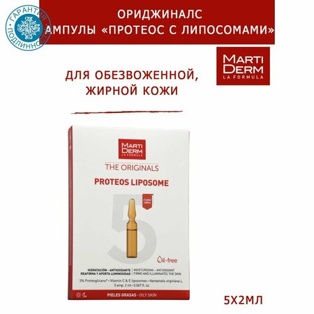 Сыворотка-уход Martiderm PROTEOS LIPOSOME- сочетает в себе мощные антиоксидантные свойства, интенсивно увлажняя и восстанавливая кожу. Ампулы антиоксидантной сыворотки Мартидерм с липосомами обеспечивают глубокое увлажнение, помогая коже сохранить естественный баланс влаги и предотвращая ее пересыхание. Легкая текстура сыворотки, без масел, позволяет коже дышать и не создает ощущения липкости, что особенно важно для проблемной и склонной к жирности кожи. Не менее важным свойством Витаминной сыворотки с липосомами, для жирной кожи является ее антиоксидантная сила, которая помогает защитить кожу от вредного воздействия окружающей среды и свободных радикалов. Благодаря входящим в состав витаминам С и E, сыворотка замедляет процессы старения кожи, укрепляет ее защитный барьер и улучшает ее общее состояние, придавая коже упругость и эластичность. Сыворотка Мартидерм идеально подходит для ежедневного использования под макияж, так как она быстро впитывается и не оставляет жирного блеска на коже. Благодаря своим увлажняющим и матирующим свойствам, сыворотка помогает создать идеальную основу для макияжа, удерживая его на протяжении всего дня и подчеркивая естественное сияние кожи. Не забывайте, что красота кожи начинается с правильного ухода, а сыворотка Martiderm Ориджиналс Ампулы «Протеос с Липосомами» станет вашим верным союзником в этом нелегком деле. Позвольте вашей коже ощутить всю заботу и любовь, которые она заслуживает, с этим удивительным продуктом, который подарит ей молодость, здоровье и сияние. Сыворотка для лица в удобных ампулах, что обеспечивает сохранность и стабильность активных компонентов продукта до момента применения. Это делает использование сыворотки особенно удобным и эффективным.