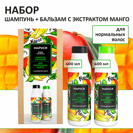 Набор в упаковке состоит из шампуня и бальзама для нормальных волос. Два косметических средства – это выгодно с экономической точки зрения. Набор может стать приятным и нужным подарком. Шампунь для нормальных волос с экстрактом манго – прекрасный вариант для ежедневного ухода и поддержания жизненной силы и красоты волос. Шампунь деликатно очищает волосы и увлажняет кожу головы. Экстракт манго в составе тонизирует, предотвращает обезвоживание и потерю эластичности. Шампунь обладает тонким чарующим ароматом. Бальзам для нормальных волос с экстрактом манго придаст блеск и роскошный ухоженный вид волосам. Благодаря экстракту манго, волосы становятся более послушными и блестящими. Масло оливы питает и увлажняет волосы, препятствует их спутыванию и облегчает расчесывание. Волосы приобретают упругость, мягкость и шелковистость. Без парабенов и силиконов