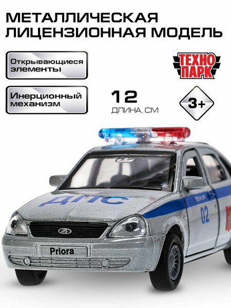 Металлическая модель «Lada Priora Хэтчбек. Полиция» ТМ «Технопарк» - прекрасный подарок для маленького автолюбителя: - открываются передние двери - открывается багажник - длина 12 см - инерционный механизм (поставьте машинку на ровную поверхность, потяните назад, отпустите – и она тут же поедет вперёд) Металлическая модель, выполненная с учётом всех особенностей прототипа, обязательно понравится вашему ребёнку. Благодаря открывающимся дверям, которые делают машинку максимально похожей на настоящую, всегда можно заглянуть к ней внутрь, чтобы убедиться - каждая деталь отлично проработана. Реалистичный дизайн данной модели позволит с головой погрузиться в игру, придумывая новые интересные сюжеты. Кроме того, эта игрушка познакомит детей с марками автомобилей. Игра с инерционной моделью ТМ «Технопарк» развивает: - координацию движений - внимание - ловкость - фантазию и воображение Размер машинки: 12 х 4 х 5. Материал: металл + пластмасса. Рекомендовано детям от 3-х лет.