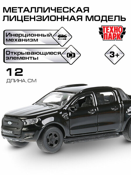 Машинки для мальчиков металлическая модель Технопарк Ford Ranger черный Пикап 12 см