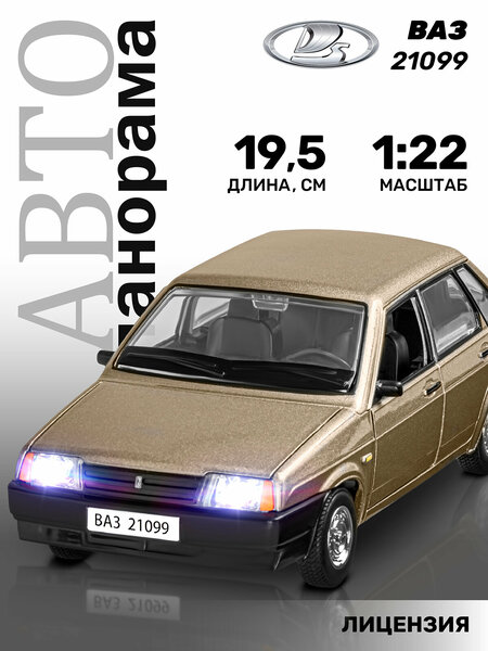 Металлическая машинка ВАЗ-21099 - уменьшенная копия автомобиля Lada Sputnik, популярного в 90-е годы, которая прекрасно дополнит игрушечный автопарк. Модель машинки является лицензионной, с легко узнаваемым дизайном, их и сейчас часто можно встретить на улицах города. Модель выполнена в масштабе 1:22, у нее открываются передние двери, капот и багажник. При нажатии на корпус и при открытии дверей начинают светиться фары и включается звук. Ребенок будет с удовольствием катать такую машинку дома и устраивать гонки с друзьями. Игрушка развивает скорость реакции, мелкую моторику, пробуждает интерес к технике. Автомобиль также может быть интересен взрослым коллекционерам. Металлическая лицензионная машинка автопанорама отличный подарок для мальчика! Производитель Джамбо. Характеристики: Масштаб: 1:22 Материал корпуса: металл Функции: открываются двери, капот и багажник, свет, звук. Батарейки: LR44 3 шт, идут в комплекте. Размер машинки: 19,5 х 8 х 6,5 см. Производитель Джамбо.