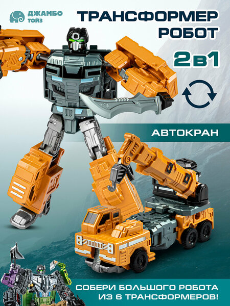 Машинка робот-трансформер 2в1, строительная техника, робот- машинка, JB040524Трансформер 2 в 1 непременно порадует для вашего ребёнка. В разложенном виде игрушка представляет собой робота, который трансформируется в автокран. Среди достоинств игрушки можно отметить чёткую стыковку деталей при трансформации игрушки из робота в автокран, подвижные элементы, интересный дизайн и, конечно же, оружие, которое идёт в комплекте. Игра с трансформером-автокраном надолго увлечёт вашего ребёнка. Он сможет придумать множество сценариев, представляя себя водителем строительной техники или командующим роботами в фантастических сражениях. Благодаря компактным размерам игрушку очень удобно брать с собой в дорогу. С роботом-трансформером ребёнку будет не только интересно играть, также он будет развивать воображение, мелкую моторику и логику. Родителей особенно порадует качество игрушки; корпус выполнен из прочной пластмассы, все детали надёжно скреплены с расчётом на многоразовую трансформацию и активные игры. Трансформер-автокран входит в коллекцию из шести трансформеров, соединив которые между собой можно собрать большого робота! Инструкция по сборке входит в комплект. Полная коллекция трансформеров станет прекрасным подарком на Новый год, День Рождения или просто, без повода. В комплекте: робот-трансформер, оружие (2 шт.), инструкция Цвет: жёлтый Размер коробки: 19,5х9,5х8,5 см Размер игрушки: робот –16,5х10 см, автокран – 11х16х6 см Возраст: 3+