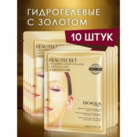 Маска для лица / Маска для лица гидрогелевая c золотом / Набор 10 шт