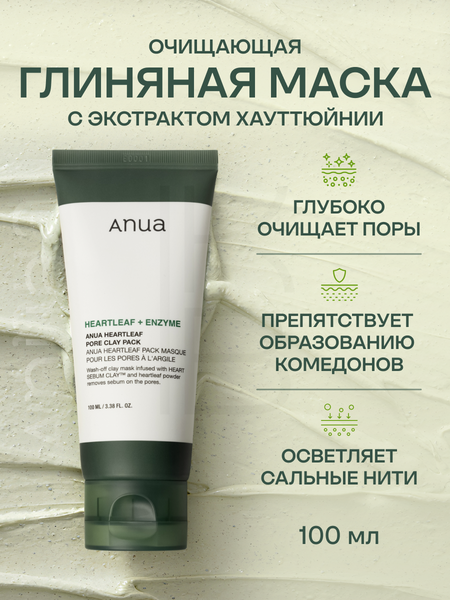 Глиняная маска для очищения пор Anua Heartleaf Pore Clay Pack абсорбирует загрязнения из пор, удаляет излишки себума и ороговевшие частицы кожи, осветляет сальные нити, препятствует образованию комедонов. Нормализует выделение кожного сала, предотвращает жирный блеск и сужает поры, не пересушивает. Успокаивает и смягчает, деликатно полирует поверхность кожи, делая её нежной и гладкой. Готовит к нанесению макияжа. Средство содержит мелкие и средние абразивные частицы, которые оказывают отшелушивающее действие, устраняя шероховатые участки. Имеет нежную кремообразную текстуру и аромат эвкалипта. Дополнительные действующие компоненты: