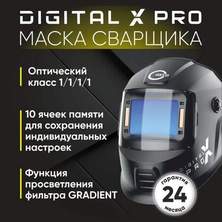 Профессиональная маска START DIGITAL X PRO с цифровым управлением, позволяет более точно настроить маску под свои задачи. Модель оснащена режимом самодиагностики светофильтра и функцией сохранение настроек. Оптический класс 1/1/1/1. Датчики 4 шт. Солнечная батарея 2 шт. Технология ЖК — ClearLens. Сварка ММА/MIG/MAG DIN 9-13. Сварка TIG DIN 4-8. Резка CUT DIN 4-8. Шлифовка GRIND DIN 3
