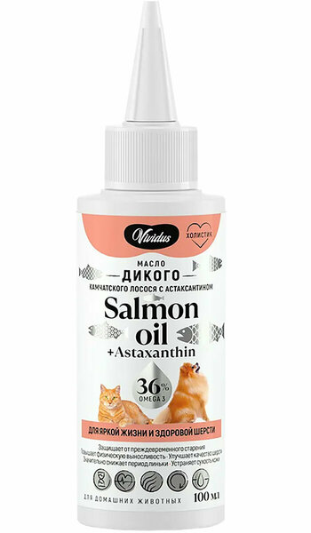 Лососевое масло c астаксантином – мощный натуральный антиоксидантный комплекс на основе природного астаксантина из морской водоросли Haematococcus pluvialis, омега-3 и витамина Е для защиты органов и тканей животных от повреждающего действия свободных радикалов.
