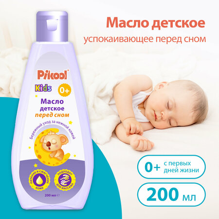 Специальная формула масла «Pikool®» создана специально для массажа перед сном. Масло быстро впитывается без эффекта липкости. Активные компоненты масла обладают увлажняющими, успокаивающими, расслабляющими свойствами, помогают малышу быстрее засыпать и крепче спать.