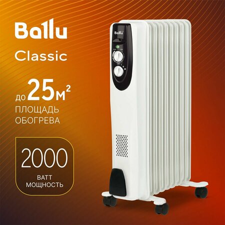 Маслонаполненный радиатор BALLU BOH/CL-09WRN серии Classic – это мобильный и современный прибор, выполненный в эксклюзивном дизайнерском решении. Антикоррозийный состав защищает модель от негативных воздействий внешней среды, а высокоточный термостат нового поколения автоматически поддерживает температуру в помещении. Отличительные особенности: Гармоничное сочетание классического дизайнерского решения и эксклюзивного цвета «Snow white» корпуса прибора Защитный антикоррозийный состав «Protective coating» - защищает масляный радиатор от негативных воздействий внешней среды и увеличивает срок службы Термостат нового поколения «Opti-Heat» - с функцией автоматического поддержания температуры и удобным эргономичным управлением. Конструкция ножек «High Stability» - благодаря специальной конструкции ножек, полностью исключается возможность опрокидывания Функциональные особенности: Полная свобода перемещения с комплексом «Easy moving» Три режима мощности обогрева Универсальная система хранения шнура Режимы работы: Мощность обогрева 800Вт Мощность обогрева 1200Вт Мощность обогрева 2000Вт Гарантия качества: Современные технологии и новейшие разработки Ballu гарантируют высокое качество и надежную эксплуатацию масляных радиаторов.