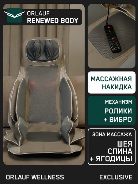 Orlauf Renewed Body ― массажная накидка, которая вполне может заменить массажное кресло. В ней установлены 2 отдельные группы роликов, 3 вида массажа, функция прогрева и гибкие регулировки для индивидуального массажа. Отдельная пара удлиненных роликов установлена для массажа шеи и плеч. С пульта можно отрегулировать положение роликов, чтобы подстроить их под свой рост. Также можно выбрать массаж по часовой стрелке или против нее. Вторая пара роликов установлена на каретке. Ролики массируют всю спину от плеч до крестца без слепых зон. Можно выбрать массаж по зонам ― только верхней части спины или только нижней, либо массаж определенной точки. Также можно изменить расстояние между роликами. Функция прогрева роликов в области шеи и спины позволит глубже и быстрее расслабить мышцы. Для качественного лимфодренажного массажа в накидке установлено 9 воздушно-компрессионных подушек. Многокамерные подушки расположены по бокам спинки и сиденья. Предусмотрено 3 уровня интенсивности лимфодренажного массажа. В сиденье дополнительно предусмотрен вибромассаж. В сочетании с воздушно-компрессионным он отлично снимает напряжение, что важно для тех, кто много сидит. Все функции массажной накидки запускаются и регулируются с пульта. В программы можно вносить изменения не только перед началом сеанса, но и во время массажа. Orlauf Renewed Body крепится к стулу или креслу с помощью широкого крепкого ремня. После массажа, когда накидка не нужна, ее можно сложить и закрепить тем же ремнем. В сложенном виде она занимает минимум места.