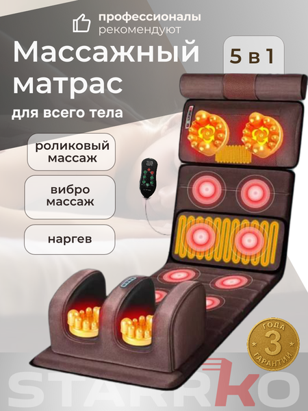 Массажный матрас и массажер для спины и шеи уже давно стал незаменимым помощником в борьбе с болями и напряжением после тяжелого рабочего дня. Коврик массажный и надувная подушка для поясницы помогут улучшить кровообращение и освободиться от боли и напряжения. Если вы предпочитаете роликовый массажер для шеи, также оборудован этим устройством. Все это в сочетании с вибромассажем создает идеальную атмосферу для релаксации и восстановления после долгого дня. Матрас с легкостью заменит все остальные приспособления и поможет вам достичь полного расслабления и восстановления. Станет незаменимым помощником в борьбе с болью и напряжением. Ароматическая подушка и подушка с роликами для шеи съемные и могут использоваться как отдельные массажеры. Электрический массажер для спины идеальный подарок для любой женщины в вашей жизни, который поможет снять усталость и напряжение в различных частях тела. Он подходит как для массажа шеи и спины, так и для массажа и ягодиц. Кроме того, подушка может использоваться для массажа шеии плеч, а также для более интенсивного массажа мышц с помощью перкуссионного массажа и миостимуляции. Он оснащен различными принадлежностями, включая роликовый, шейный, антицеллюлитный и вибромассажер. Кроме того, он имеет функцию подогрева, что поможет расслабиться и улучшить кровообращение. Подходит для оздоровления и восстановления после травм и напряжения. Он поможет им избавиться от болей в мышцах, укрепить мышечную ткань и улучшить гибкость тела или для похудения. Кроме того, массажер миостимулятор оснащен массажной подушкой, роликом и ковриком для удобства использования дома или в офисе. Отличный антистресс в домашних условиях. Не является медицинским изделием.
