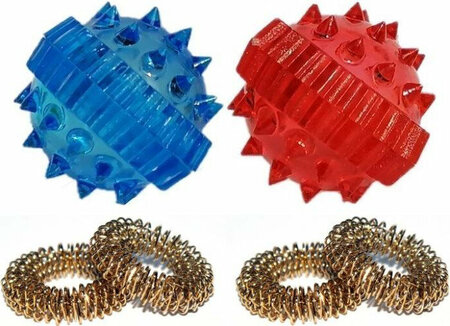 Набор массажёров "Су-Джок" для рук и ног, массажный шарик с кольцевыми пружинами, мяч для МФР, игольчатый мячик, в комплекте 2 шара и 4 кольца, d 3,5 см
