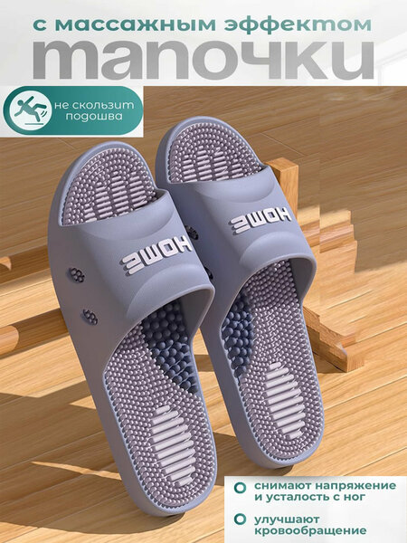 Откройте для себя новый уровень комфорта с массажными тапочками Релаксы. Тапочки не просто обувь для дома — это настоящий источник оздоровления для ваших ног. Мягкие шипы на стельке массируют акупунктурные точки, снимая напряжение и усталость после долгого рабочего дня. Их универсальный дизайн делает их подходящими как для мужчин, так и для женщин. Кроме того, наши тапочки шиацу обладают ортопедическими свойствами, что делает их идеальными для использования в течение длительного времени. Преимущества: Снятие отечности: Уникальный массаж стоп способствует улучшению кровообращения, что помогает избавиться от отечности. Укрепление здоровья: Стимуляция микроциркуляции крови и лимфотока способствует общему укреплению организма. Комфорт и стабильность: Тапочки отлично сидят на ноге и не скользят, обеспечивая безопасность при использовании в домашних условиях, в гостиницах или на даче. Удобство в использовании: Легкие и прочные, они идеально подходят для отдыха на пляже в бассейне или использования в душе и ванной. Изготовленные из прочного материала ЭВА, массажные тапочки легко моются и требуют минимального ухода. Это идеальный подарок для родных и близких — проявите заботу о их здоровье и комфорте. Позвольте своим ногам насладиться оздоровительным массажем и комфортом с массажными тапочками. Сделайте шаг к здоровью и расслаблению уже сегодня!