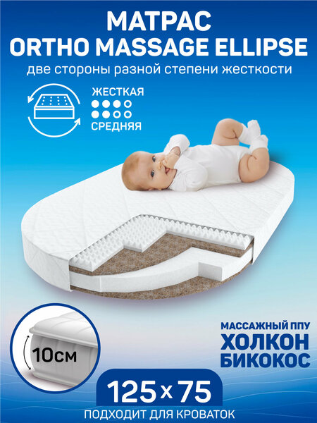 Матрас AmaroBaby с ортопедическим массажным эффектом, Ortho Massage Ellipse (овальный) 1250 x 750 х 100 (10 мм - бикокос,80 мм - холкон,10 мм - бикокос,20 мм - ППУ)