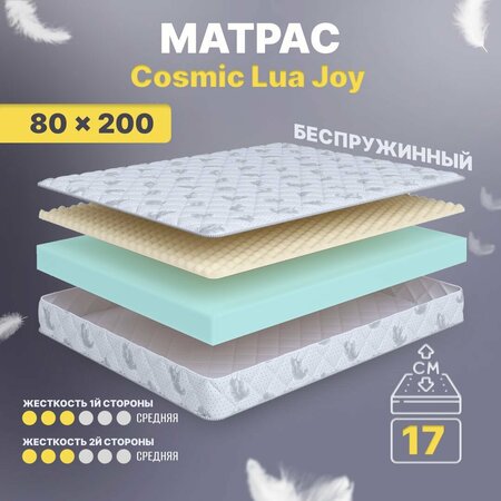 Матрас беспружинный 80х200, для кровати, Cosmic Lua Joy анатомический, 17 см, односпальный, средней жесткости