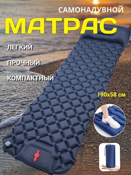 Матрас самонадувной для дачи и дома, для отдыха и туризма, коврик самонадувающийся с подушкой, складной