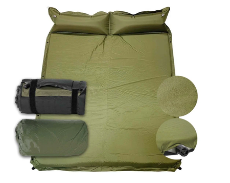 Коврик туристический самонадувающийся двухместный толщина 5см. Удобный, мягкий и простой в использовании матрас. Не требует применения насоса. Чтобы надуть коврик необходимо извлечь его из чехла, расправить на ровной поверхности и открыть все клапаны. Оставьте матрас лежать для предварительного накачивания. Само надувной матрас накачивается примерно до 80-90%. Остальной объем, при необходимости, Вам нужно надуть самостоятельно, доведя давление до желаемого уровня комфорта. После этого закройте клапаны - матрас готов к использованию. Матрас самонадувающийся предназначен для использования в межсезонье и летом (весна-лето-осень). Идеально подходит как для дома для сна, так и для использования на открытом воздухе, даче, для плавания на море и кемпинге на природе с палаткой. Двухместный матрас оснащён универсальным клапаном для накачивания и сдувания - подойдёт любой тип насоса: ручной, ножной, электрический. Матрас состоит из пористой пены которая легко вбирает воздух между ячейками после открытия клапана. Пена отличный теплоизолятор, к тому же этот материал легко сжимается что делает его очень компактным. Поверхность, на которой приходится спать на природе зачастую далеко не мягкая и ровная. Раньше все обходились обычным карематом или громоздким надувным матрасом с насосом. Но в наше время изобрели само надувающийся коврик, он же само надувающийся матрас. Этаких ковриков внутри прячется пористая пена. Она легко вбирает воздух между ячейками, поэтому коврик самостоятельно надувается после открытия клапана. Пена отличный теплоизолятор, если внутри матраса нет воздуха, такая надувная кровать всё равно будет защищать от холода, хоть и не так эффективно, как в надувном состоянии. Такая туристическая кровать легко сжимается, поэтому самонадувающиеся коврики очень компактны. Такая надувная мебель подойдет для туризма в палатку, для рыбалки и охоты. Также надувной матрас с подушками можно использовать для сада и дачи, кемпинга и походов.