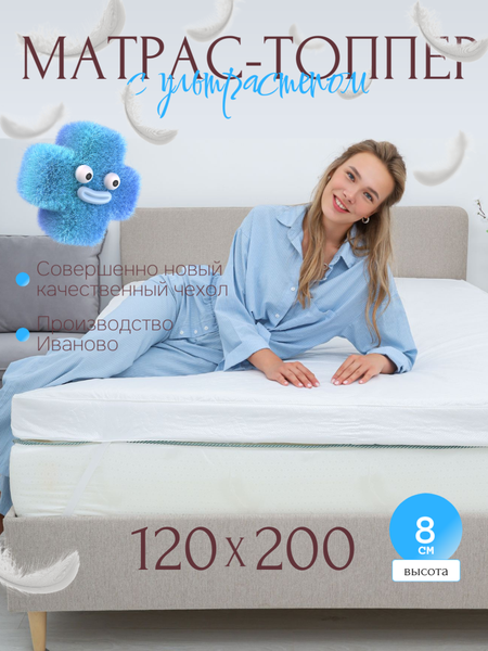 Матрас топпер Шахслип 120х200 см, толщина 8 см, ткань ультрастеп