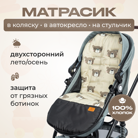 Универсальный всесезонный матрасик в коляску StrollerAcss создан для уюта и комфорта вашего малыша в любое время года. Одна из сторон 100% хлопок- подходит для жаркого лета и отлично впитывает влагу. Другая сторона нежный флис антипиллинг согреет в прохладную погоду осенью, весной и зимой. Ткань вкладыша для коляски нежная и гипоаллергенная. При контакте с ней не вызывает раздражения, поэтому безопасна для кожи. Наполнитель холлофайбер. Благодаря ему матрасик отлично сохраняет мягкость и форму, независимо от срока использования. Для удобства предусмотрена защита от грязной обуви с двух сторон. Загрязнения легко удаляются влажной салфеткой и не нужно стирать матрасик полностью. Матрас в прогулочную коляску легко крепится: клапан на спинку сиденья, а резинка за подножку или корпус коляски. Для ремней безопасности уже подготовлены стандартные прорези 2 верхние, 2 боковые и 1 нижняя. Дополнительные можно прорезать самостоятельно маникюрными ножницами. Размер матрасик для стульчика: высота 90 см, ширина верхний части 45см, ширина средней части 35см. Матрас для коляски подходит для большинства прогулочных колясок, а также в стульчик для кормления и некоторые модели автокресел. Рекомендации по уходу: Перед первым использованием постирать. Деликатная стирка 30С, отжим 800об.