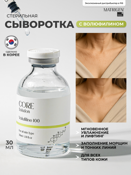 Matrigen Core Solution Volufiline 100 Ампульная антивозрастная серум ампула Волюфилин для мезотерапии лица руками аппаратом, 30 мл Небольшое количество Волюфилина, извлеченного из экстракта корня азиатского растения Asphodeloides, проникает глубоко в кожу, делая кожу, потерявшую свои прежние объёмы и тонус, упругой и подтянутой, и предотвращает потерю влаги в коже, делая ее увлажненной. Преимущества косметики с Волюфилином + Самым большим преимуществом Волуфилайна является то, что нет необходимости беспокоиться о побочных эффектах, вызванных гормонами, поскольку он является негормональным компонентом и не влияет на гормональный баланс организма. + Подкожный жир может постепенно теряться из-за старения кожи или диеты, но Волюфилин сам по себе обладает преимуществом, стимулирующим выработку и хранение жировых клеток и надолго закрепляющим результаты. + Для проявления эффекта от компонента требуется много времени, но благодаря тому, что он наносится безопасным методом, а не прямым инъекционным методом, то нет необходимости беспокоиться о побочных кожных эффектах и сыворотку можно применять на регулярной основе. Активные ингредиенты Гидрированный полиизобутен - насыщает подкожный жир кожи, помогает сделать её тем самым гладкой. Помогает поддерживать влажность, предотвращая потерю влаги кожей. Это помогает сохранить текстуру кожи эластичной. Превращает дряблую кожу в упругую, эффективно укрепляя ее здоровье. Anemarrhena asphodeloides Bunge - это ингредиент, который активирует жировые клетки и помогает улучшить эластичность кожи груди. Он обеспечивает обильное увлажнение и питание, делая кожу эластичной и блестящей. Anemarrhena asphodeloides Bunge - это умное растение, которое обладает антибактериальным, гипогликемическим и жаропонижающим действием и является эффективным ингредиентом для повышения молекулярной эластичности клеток.