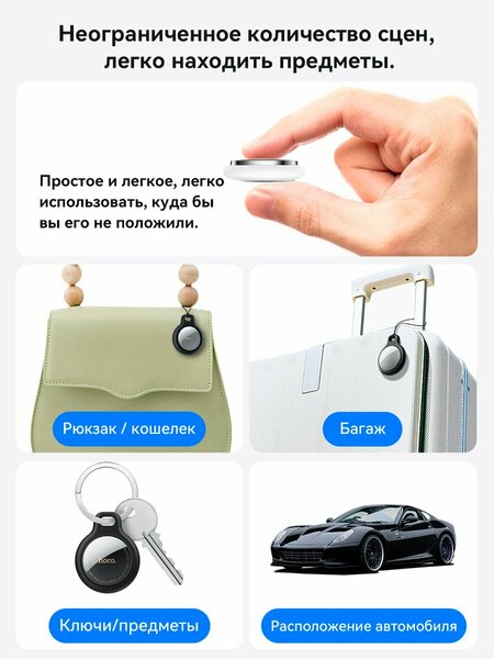 Маячок Hoco E91 AirTag для iPhone: защита от потери и точное позиционирование Hoco E91 AirTag – это компактный трекер для iPhone, который позволяет отслеживать местоположение личных вещей через встроенное позиционирование. Устройство выполнено из прочного и легкого ABS-пластика, удобно крепится к предметам и оснащено сменной батареей CR2032 с продолжительностью работы до 12 месяцев без подзарядки. Совместимость с Apple Find My: точное определение местоположения Материал корпуса: ABS – прочный и легкий Батарея CR2032 (230 мАч) – срок службы до 12 месяцев Размер: 31 × 31 × 9 мм – миниатюрная конструкция Вес: 7 г – почти не ощущается при использовании Совместимость с iPhone и iPad – начиная с iPhone 6s и iOS 14.5 Маячок Hoco E91 AirTag для iPhone – это надежный и удобный аксессуар, который поможет вам быстро найти потерянные вещи и обеспечит их безопасность.