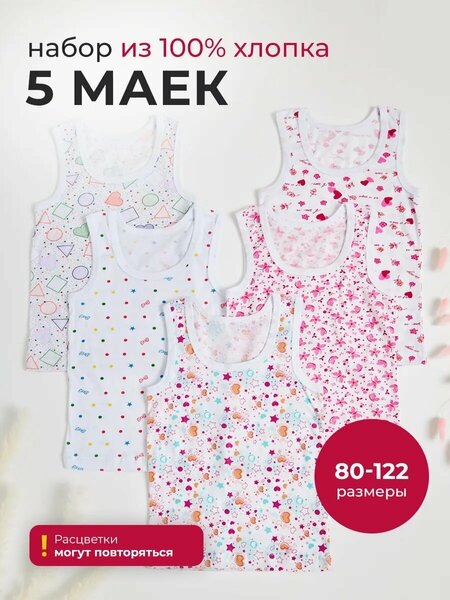 Майка для девочки от AMOTEKS подарит комфорт вашей девочке. Майка на бретелях в комплекте из 5 штук создана из 100% хлопка. Широкий размерный ряд от 26 до 40 подойдет для маленьких девочек так и для уже взрослых принцесс. Майка детская для девочек сшита нами для того что бы в них удобно было играть, заниматься спортом, отдыхать и спать, дышащий материал и аккуратные отделки не стесняют движений. Майка для девочки летняя это оптимальный вариант для детского сада и занятий в начальной школе. В любое время года и демисезонный период маечка - это хорошая поддева под основную одежду. Классные, мягкие майки детские станут лучшим подарком на любой праздник – день рождения, Новый год, 8 Марта и даже без повода при походе в гости.