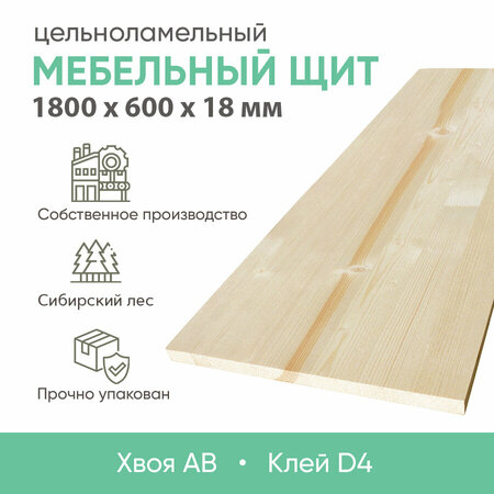 Мебельный щит из хвойных пород дерева - надежное и качественное решение для вашей мебели. обладает высокими эксплуатационными характеристиками и идеально подходит для создания мебельных изделий различного назначения, от столов и стульев до полок и шкафов. Наш щит изготовлен из высококачественной сосны с использованием технологии цельноламельного склеивания деревянных брусков между собой по ширине, что обеспечивает прочность и долговечность конструкции. Толщина щита составляет 18мм, что позволяет создавать стабильные и надежные изделия. Сорт АВ гарантирует красивый внешний вид и естественную текстуру древесины. Это создает уютную и теплую атмосферу в вашем доме. Мебельный щит за счет естественной текстуры дерева прекрасно подходит как для профессиональных столяров и мастеров, так и для любителей и домашнего использования. Он обладает хорошей обработкой, легко режется, шлифуется и фрезеруется, позволяя вам реализовать свои творческие идеи. Преимущества мебельных щитов из хвои:· упаковка — термоусадочная пленка;· влажность — 8-10 %;· вес плотного куба — 400-500 кг;· исполнение — сращенный/цельноламельный;· обработка — поверхность шлифованная, размер зерна абразива — 80-120;· класс клеевого соединения — D4;· ширина ламелей — 30-50 мм;· твердость по Бринеллю — Сосна 1,6/Ель 1,3;· допуски по геометрическим размерам — по ширине ±2 мм/по длине ±2 мм/по толщине ±0,3 мм. Мы храним продукцию с беспрерывным контролем влажности окружающей среды и температуры. Каждый щит упакован в полиэтиленовую пленку, чтобы исключить попадание влаги внутрь изделия и сохранить его заводские свойства. Условия хранения: клееные изделия из натуральной древесины следует хранить в сухом отапливаемом месте при температуре 20+/-5 град. С и относительной влажности воздуха 65+/-10% без попадания прямых солнечных лучей, в герметичной упаковке. После вскрытия упаковки следует в течение рабочего дня покрыть изделия из массива клееной древесины влагоотталкивающим покрытием для сохранения неизменной влажности древесины.