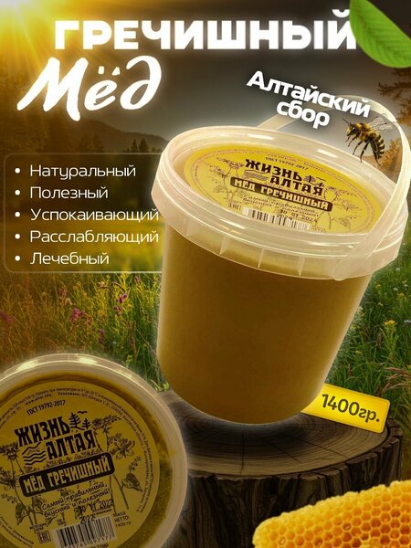 Натуральный гречишный мед "Жизнь Алтая" - это высококачественный продукт, собранный на Алтае. Он обладает богатым составом, включающим витамины, минералы, макро- и микроэлементы, а также аминокислоты, глюкозу и левулезу. Этот мед особенно полезен для беременных женщин и кормящих грудью матерей, а также для маленьких детей, так как он укрепляет организм и помогает бороться с различными заболеваниями. Кроме того, гречишный мед "Жизнь Алтая" обладает рядом полезных свойств, таких как нормализация давления, улучшение работы почек и кишечника, а также использование в качестве антисептика. Он также может быть использован для поддержания отличной работы головного мозга, благодаря содержанию глюкозы и фруктозы, которые придают человеку новые силы и бодрость. Гречишный мед "Жизнь Алтая" не содержит ГМО, искусственных красителей, консервантов и сахара, что делает его безопасным и полезным для здоровья. Продукт упакован в пластиковую банку весом 1400 грамм, что обеспечивает удобство хранения и использования. Важно отметить, что данный мед подходит для вегетарианцев и людей, соблюдающих пост, так как он может быть употреблен в пищу в эти периоды. "Жизнь Алтая" поможет подобрать какой мед подойдет именно Вам. У нас Вы сможете купить мед для себя и в подарок своим близким. Для бабушки и дедушки мед будет хорошим подарком на Рождество, Пасху, Масленицу и в пост. Мама будет рада получить такой подарок на День рождение, Новый год и 8 марта, а папа на 23 февраля и 9 мая. День влюбленных можно подсластить баночкой меда другу или подруге. Наш мед – это уникальный, оригинальный, съедобный подарок на все случаи жизни! Существует множество рецептов с медом. Его добавляют в кондитерские изделия, соусы, напитки (чай, морсы, настойки и т. д.). Также он используется в ПП, ЗОЖ, как диетический продукт, постный продукт и для детокса. В косметологии натуральный мед используется для лечения дерматологических проблем, с целью профилактики старения кожи лица и тела, а также для улучшения структуры ослабленных и ломких волос. В медицине используют для лечения ОРВИ и других простудных заболеваний. Это связано с тем, что продукт обладает иммуностимулирующим и потогонным действием. Он помогает при повышенной температуре, лихорадочных состояниях, чувстве слабости. "Жизнь Алтая" поможет подобрать какой мед подойдет именно Вам. У нас Вы сможете купить мед для себя и в подарок своим близким. Для бабушки и дедушки мед будет хорошим подарком на Рождество, Пасху, Масленицу и в пост. Мама будет рада получить такой подарок на День рождение, Новый год и 8 марта, а папа на 23 февраля и 9 мая. День влюбленных можно подсластить баночкой меда другу или подруге. Наш мед – это уникальный, оригинальный, съедобный подарок на все случаи жизни!