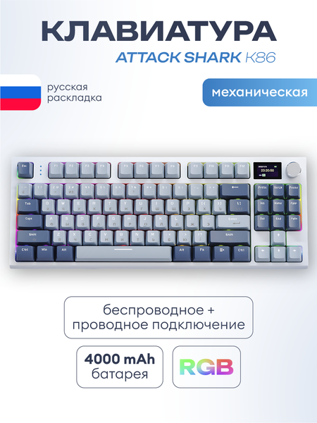 Механическая игровая клавиатура ATTACK SHARK K86 создана для геймеров, которым требуется высокая производительность и надежность. Эта клавиатура имеет компактный дизайн с 87 клавишами, что делает ее удобной для переноски и использования в любом месте. Беспроводная клавиатура K86 имеет прокладочную структуру, в которой используется прокладочный материал между пластиной и корпусом клавиатуры как с верхней, так и с нижней стороны. Высокоточный стабилизатор уменьшает шум при наборе текста, обеспечивает максимальный комфорт для погружения в игровой процесс. Эта игровая клавиатура также оснащена регулируемой RGB-подсветкой с 27 основными и 15 боковыми подсветками, что позволяет настроить освещение в соответствии с вашими предпочтениями. Механическая клавиатура K86 имеет три способа подключения: проводной, Bluetooth и 2,4 ГГц. Она может легко переключаться между 3 различными беспроводными устройствами, и больше не ограничивает возможности подключения.